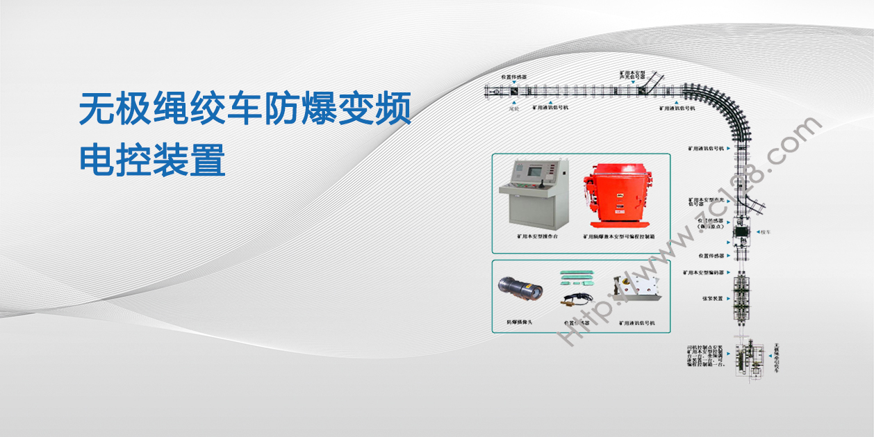 煤礦輔助運輸是整個煤礦運輸系統(tǒng)不可或缺的重要組成部分。無極繩牽引絞車是用于煤礦井下巷道的以鋼絲繩牽引的普通軌道運輸設(shè)備,適用于長距離、大傾角、多變坡、大噸位工況條件下的工作面順槽、采區(qū)上(下)山和集中軌道巷等系統(tǒng)行駛線路內(nèi)材料、設(shè)備的運輸。防爆變頻無極繩絞車電控裝置是應(yīng)用于有煤塵、瓦斯等爆炸性氣體的場合,是礦用無極繩絞車理想的電控裝置。