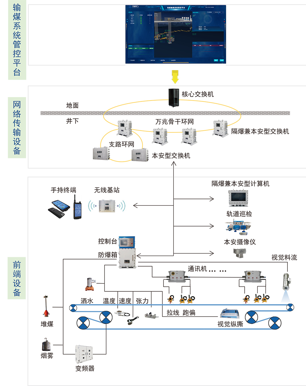 為響應國家智能化礦山建設(shè)的需求,我公司結(jié)合自身專業(yè)特長和煤礦輸煤實際工況,研發(fā)推出了礦山智能輸煤系統(tǒng),該系統(tǒng)將自動化、信息化、智能化有機的結(jié)合起來,滿足智慧化礦山建設(shè)中輸煤智能化的要求,為煤礦用戶實現(xiàn)輸煤智能化提供了一站式解決方案。